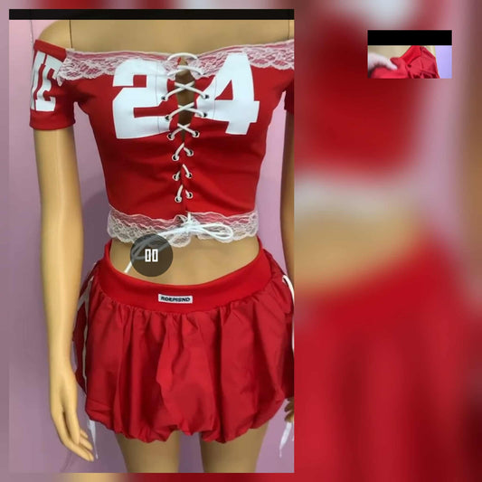 Skort or Short Red lace Top