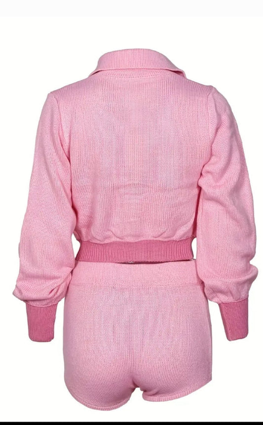Pink Knit Short Set
