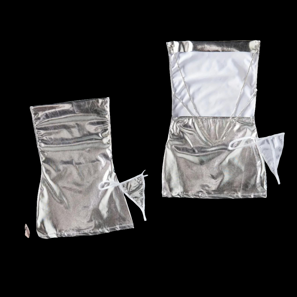 Jewel Strap Silver Backless Dress